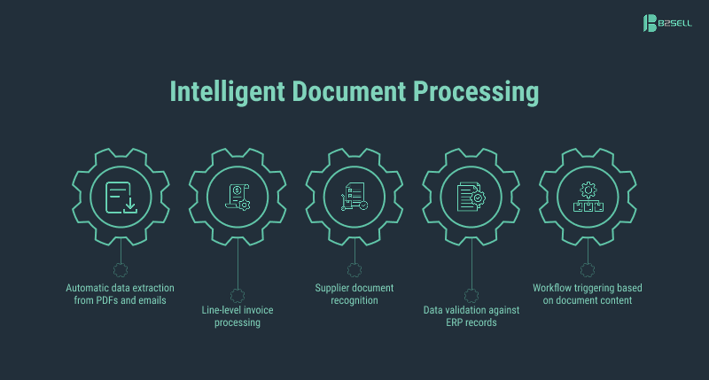 B2Sell’s AI document processing solutions use advanced AI models to automatically extract and structure information from documents. The system can capture key data from invoices, confirmations, shipping notices, and other operational documents.