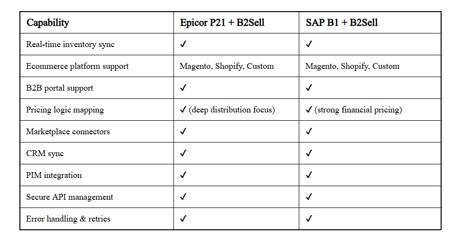 Epicor P21 vs SAP B1 Integration: Feature-by-Feature