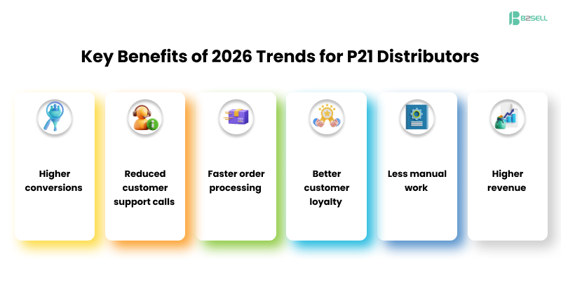 Below are the essential trends shaping the future of P21 Ecommerce in 2026. Each trend includes examples, steps to implement, and distributor-specific insights.