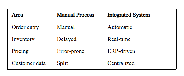 Many distributors start ecommerce without integration. At first, it seems manageable. Over time, problems grow.